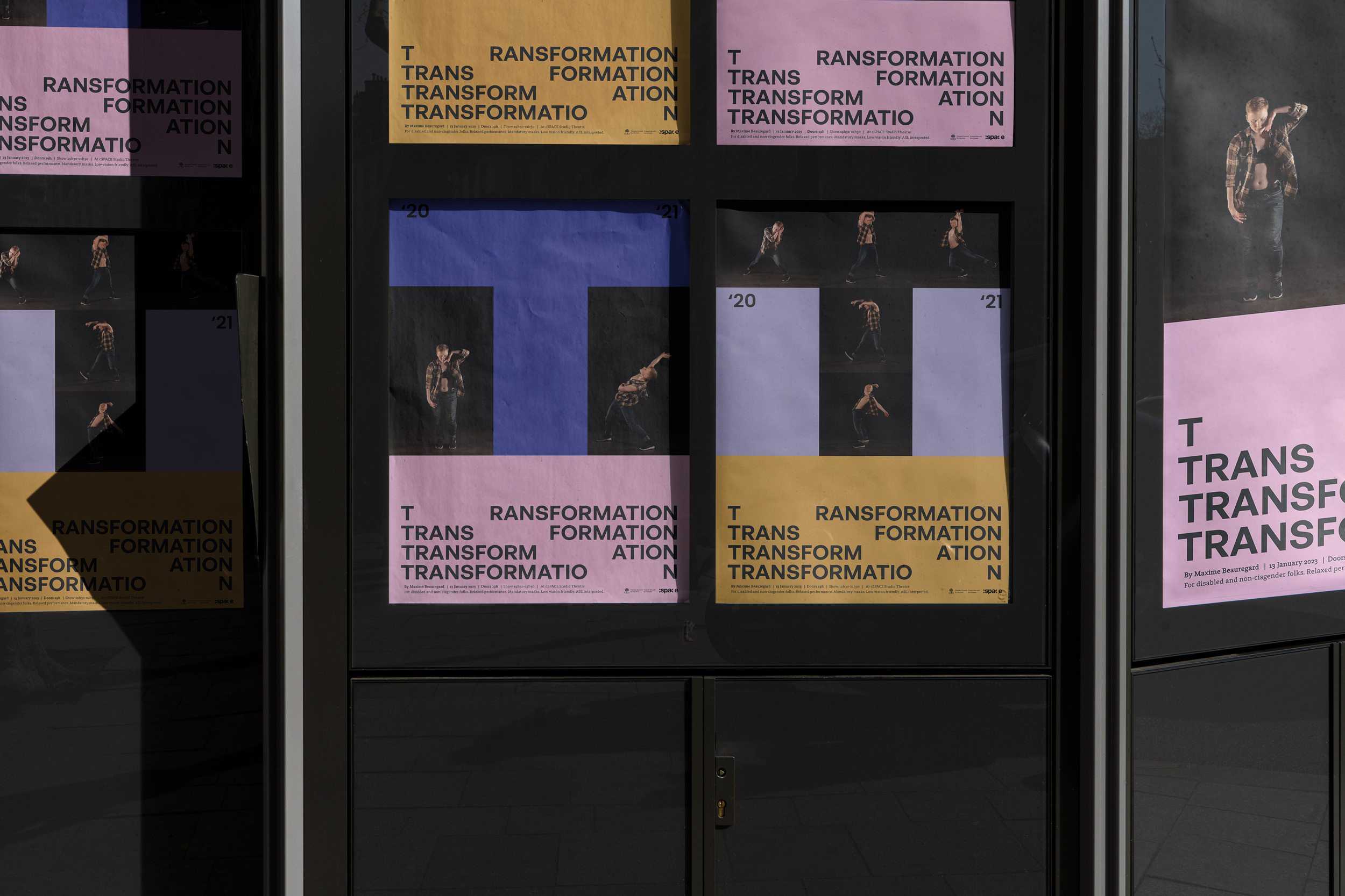 CHALLENGE: Develop the visual identity and promotional materials for a contemporary dance performance entitled Transformation by Maxime Beauregard. As a transgender non-binary autistic person, the show emerged from a year-long exploration documenting the impact of hormonal replacement therapy on their dance practice. It is a creative access performance specifically tailored for the Mad, Deaf, neurodivergent, Disability, and non-cisgender communities.